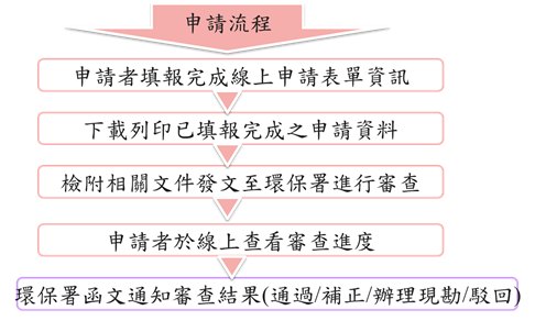 欲申請查驗機構許可證或增列查驗項目者須於網路填報申請資料,下載列印已填報完成之申請資料,發函至本署。本署於受理後進行審查,申請者可於線上查詢審查進度。